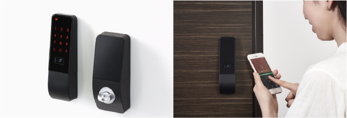 ライナフが、鍵・錠前の総合メーカーである美和ロック株式会社と共同開発した、住宅向けに特化したスマートロックです。スマートフォンや専用カード(交通系ICカードなど)、パスワードによる解錠に対応しており、工事中・空室中・入居中・退去時までキーレスでの管理が可能です。利用者が安心して使用できるよう、各種セキュリティ機能も備えています。さらに、扉を傷つけずに設置できる独自のドア取り付け方式を採用することで、従来のスマートロックにありがちな落下や位置ズレといった課題も解消しています。